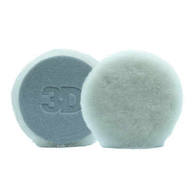 3D White Wool Cutting Pad 3" Hook & Loop Heavy Cut Rotary