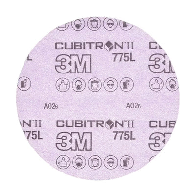3M Cubitron II Hookit Clean Sanding Film Disc 775L features 3M Precision Shaped Ceramic Grain, a revolutionary advancement in abrasive technology. The triangular shaped ceramic mineral is designed to slice through the substrate, rather than gouging or “plowing” like conventional abrasives, resulting in a disc that cuts up to 2x as fast and lasts up to 6x as long as conventional abrasives.