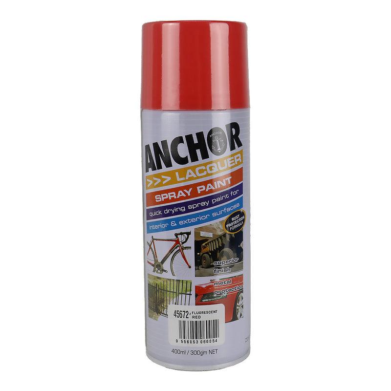 ANCHOR Lacquer Spray Paint Fluorescent Red 300gm Aerosol Quick Drying