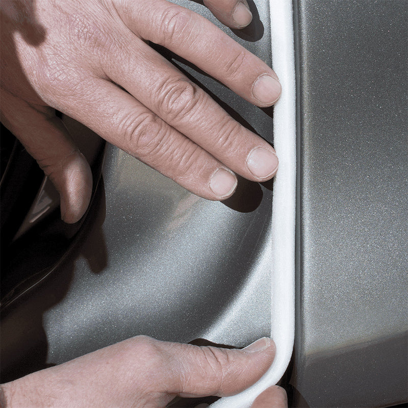 A strip of adhesive foam for protecting door edges, trunk, hood and other openings on the vehicle, speeding up the protection process prior to painting, acting as a barrier preventing dust and paint from entering the inside of the vehicle. Supplied in individual boxes in strips of 10 x 5m x 13mm.