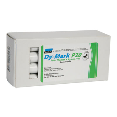 DY-MARK Paint Marker P20 White Reversible Bullet Chisel Nib 3mm & 5mm x 12 Box