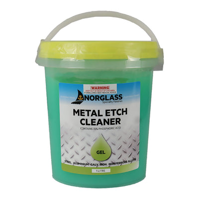 NORGLASS Metal‑Etch Gel Cleaner is a specialist metal conditioner designed for treating bare aluminium, galvanised iron and non‑ferrous alloys such as brass and copper. This 1 litre thixotropic gel clings to vertical surfaces, ensuring thorough etching and priming of metal before painting or clear coating.