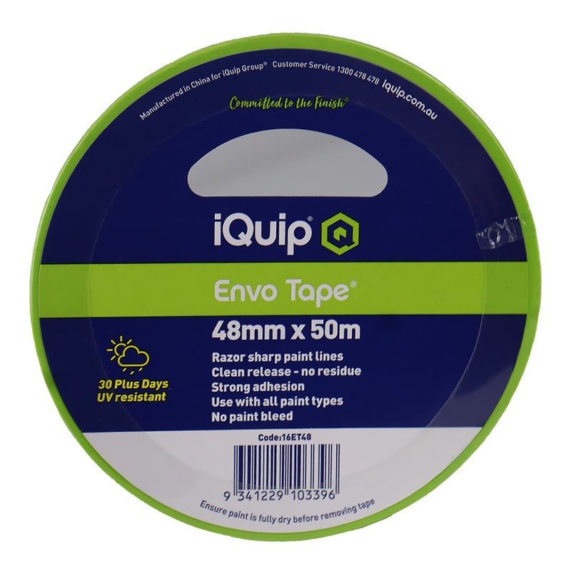 IQUIP Envo Tape is a high-performance masking tape engineered for clean, precise paint lines and reliable adhesion across a wide range of surfaces. Designed for professional painters, decorators and automotive refinishing, it offers excellent tack, smooth unwind and clean removal, making it ideal for detailed masking and general surface protection.
