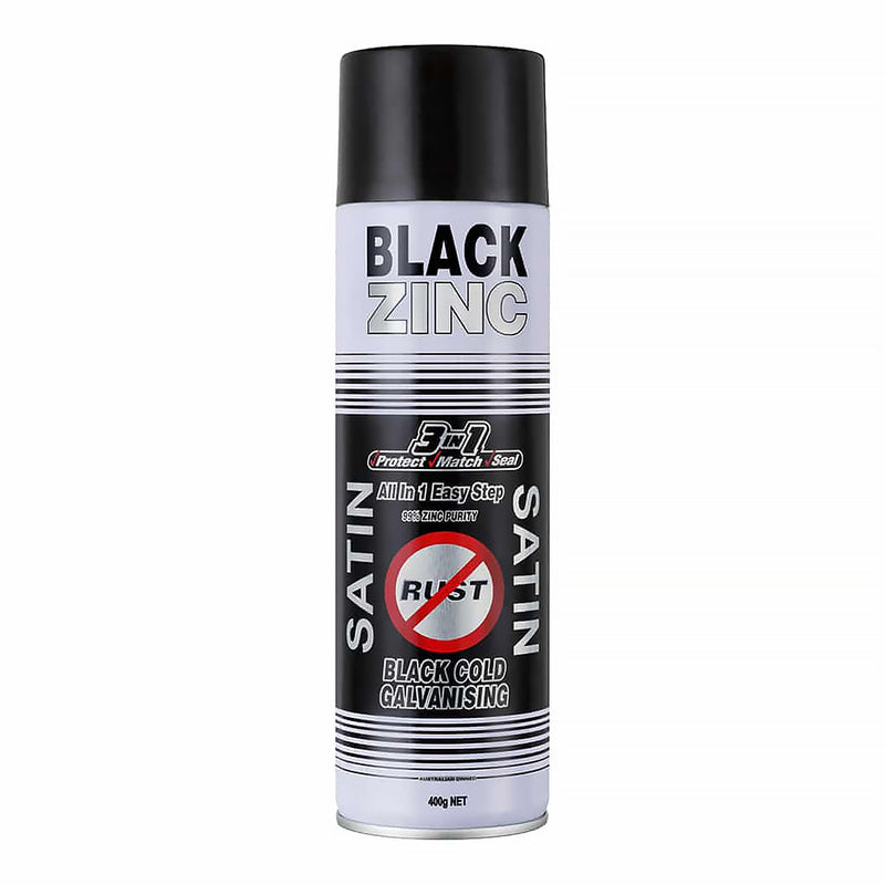 SILVER ZINC SUPPLIES 3 in 1 Cold Galvanising Metal Primer Satin Black 400g Aerosol 99% Zinc