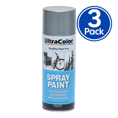 ULTRACOLOR Spray Paint Fast Drying Interior Exterior 250g Silver x 3 Cans