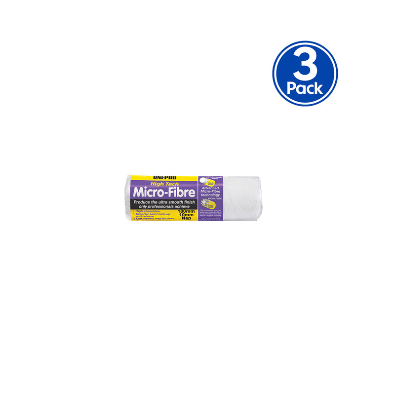 UNi-PRO 180mm Microfibre Roller Cover 10mm Nap General Purpose Finish x3