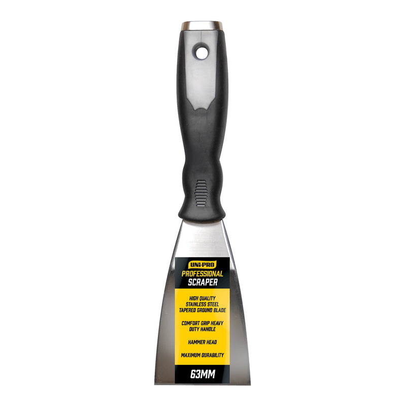 The Uni Pro Professional Comfort Grip Stainless Steel Scraper is a durable, trade-quality tool designed for surface preparation, paint removal and general maintenance tasks. Featuring a robust stainless steel blade and an ergonomic comfort grip handle, it provides excellent control and reduced hand fatigue for extended use.