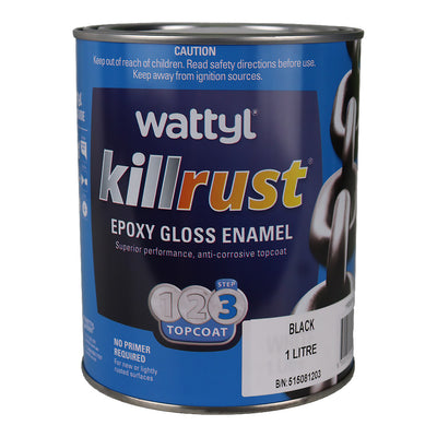 WATTYL Killrust Epoxy Gloss Enamel Black 1L Rust Protection Metal Paint