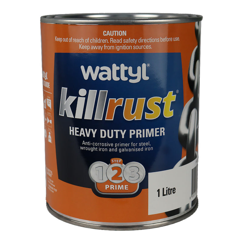 Wattyl Killrust Heavy Duty Primer is a high performance, anticorrosive primer that can be applied to most metal surfaces including steel, wrought iron and galvanised iron. Killrust Heavy Duty Primer forms a tough, flexible coating that works to resist corrosion, even in the harshest of environments when topcoated with Killrust Epoxy Gloss Enamel or Killrust Roof Paint.
